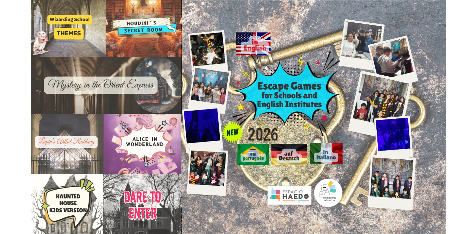 Únete a nuestros juegos de escape en inglés especialmente pensados para grupos de escuelas e insitutos de idiomas